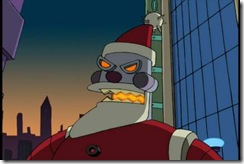 Comparing Stephen Harper to Santa. Just not an image an adult should have in his or her head, let alone a picture to paint for a small child so close to Christmas. Gets your attention, like say Debbie suddenly popping up in red leather anchoring the news, but in a totally creepy way.